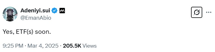 Sui, meanwhile, has hinted at growing its presence in Washington, DC. On Feb. 4, Mysten Labs co-founder Adeniyi Abiodun revealed the project was engaging in “exciting conversations” that could expand its ecosystem. A month later, Abiodun suggested that SUI could be considered for ETF inclusion. On March 6, a Delaware filing indicated that Canary Capital may be exploring an ETF for SUI, though past fake ETF filings have made the industry wary of premature speculation.
