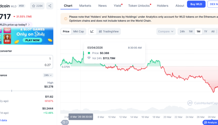 In a Saturday post on X, the foundation said its token issuance arm, World Assets, completed the sale to four counterparties over the past week, with the first tranche settling on March 20. The transactions were priced at an average of roughly $0.27 per token, suggesting that around 239 million Worldcoin (WLD) changed hands.