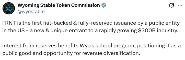Wyoming’s Stable Token Commission plans to scale FRNT throughout 2026 by onboarding additional resale partners, deploying the token across other state agencies, and working with public entities interested in launching their own stablecoins.