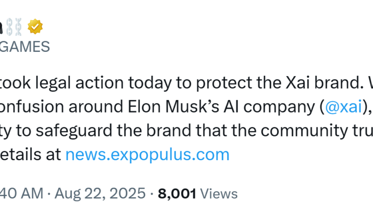 Ex Populus, the Delaware corporation behind Xai, said it has used the XAI trademark in US commerce since June 2023, including through its blockchain gaming ecosystem and the $XAI token. “This is a classic case of trademark infringement that requires the Court’s intervention to remedy,” the filing said.