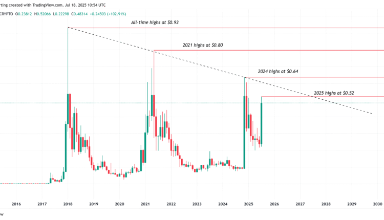 According to Brandt’s analysis, the critical support sits at the April low of $0.20, roughly 58% below current market prices. However, reclaiming and holding above the $1 threshold remains a formidable challenge.
