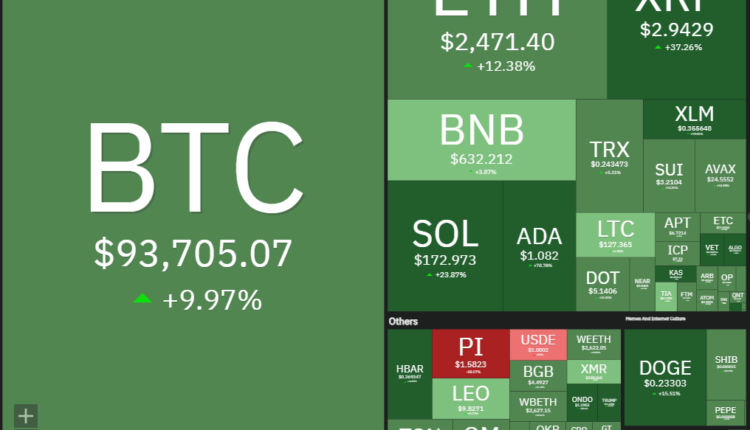 Bitcoin has reached the 20-day exponential moving average ($92,366), indicating aggressive buying at lower levels.