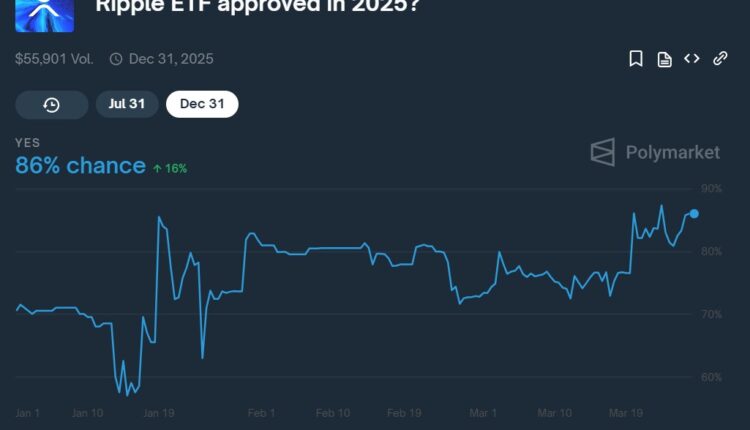Polymarket punters give 86% odds to XRP ETF approval in 2025