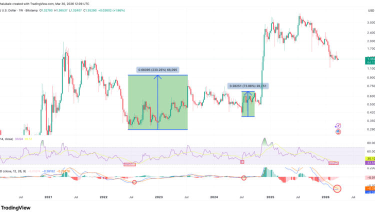Data from TradingView reveals that XRP’s weekly relative strength index (RSI) reached an oversold level of 29 on March 2, signaling fading bearish momentum.