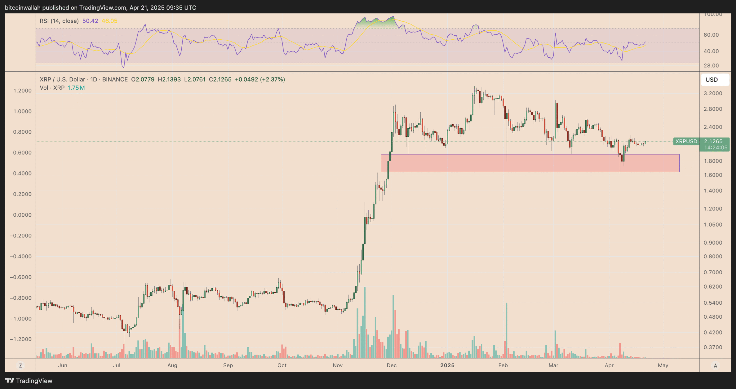 Notably, the bullish reversal structure has been narrowing since February 2025. A breakout above the wedge’s upper trendline, currently around the $2.20-2.40 area, would signal the start of a new rally.