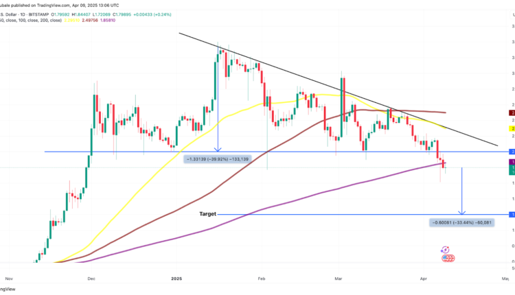 “Right now, $1.81 is a critical level to break in this plan,” the trader said in an April 8 post on X, adding that if the price loses that level, it would confirm a deeper move.