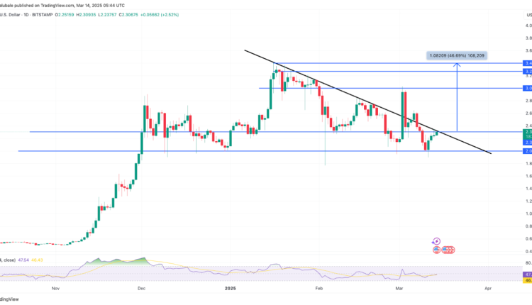 XRP‘s price is now testing the triangle‘s upper trendline at $2.30, raising hopes of a daily candlestick close above this level.
