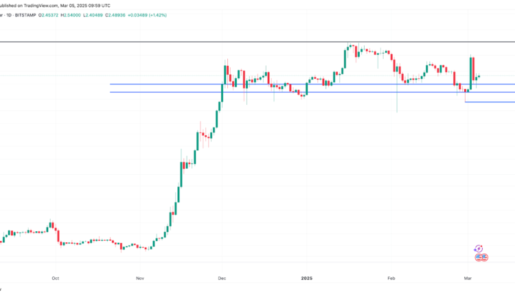 XRP’s (XRP) price is trading 28% above its $1.94 lows reached on Feb. 28, up 6.5% over the last 24 hours. Traders keep rally hopes alive as the altcoin holds above a key support level.