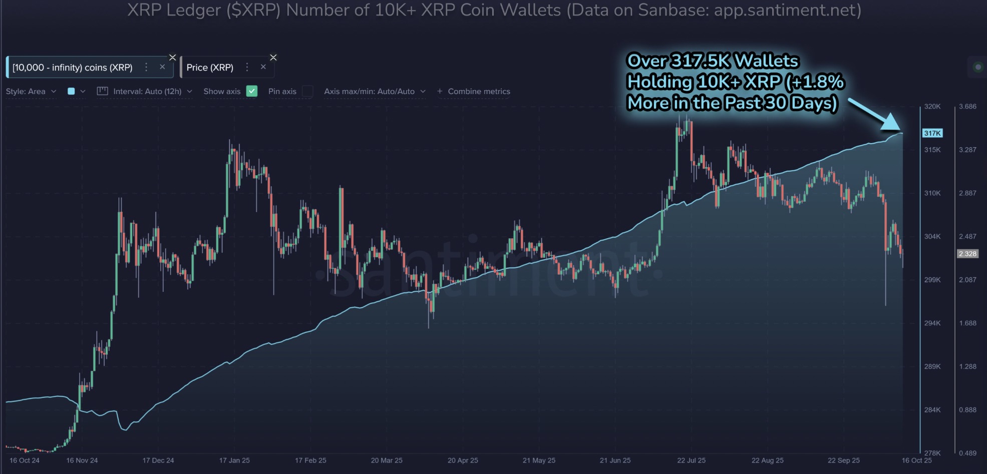 “XRP now has over 317.4K wallets holding at least 10K coins for the first time in history.”