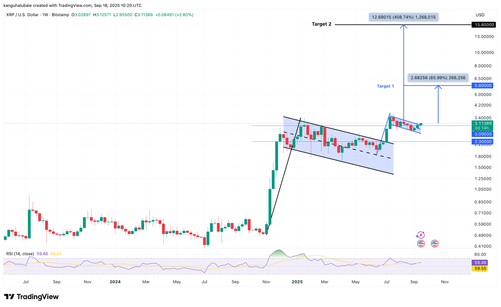 XRP price action has painted bull flag patterns on the weekly time frame that could result in a massive breakout to as high as $15.