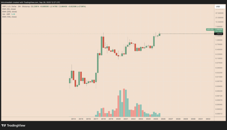 XRP nears record quarterly close, echoing a 2017 setup that preceded a 37,800% rally.