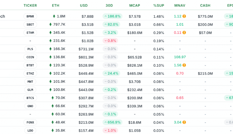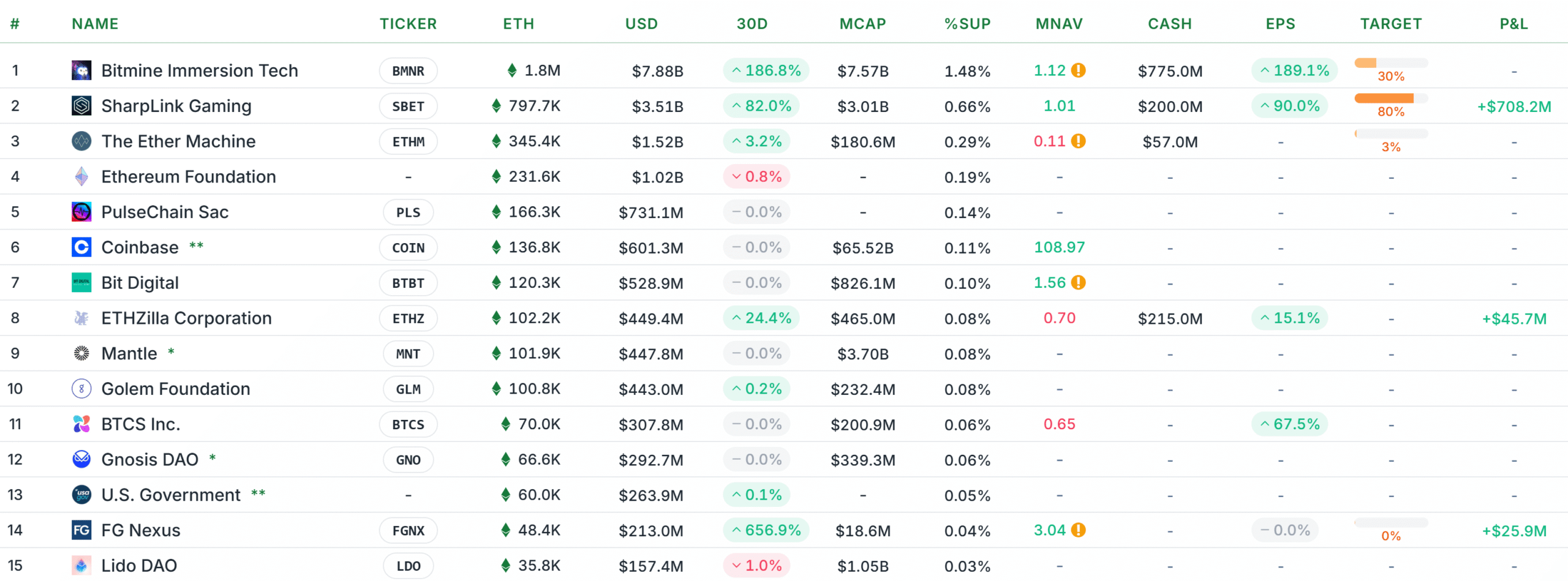 Top 15 Ether treasury companies. Source: StrategicETHReserve