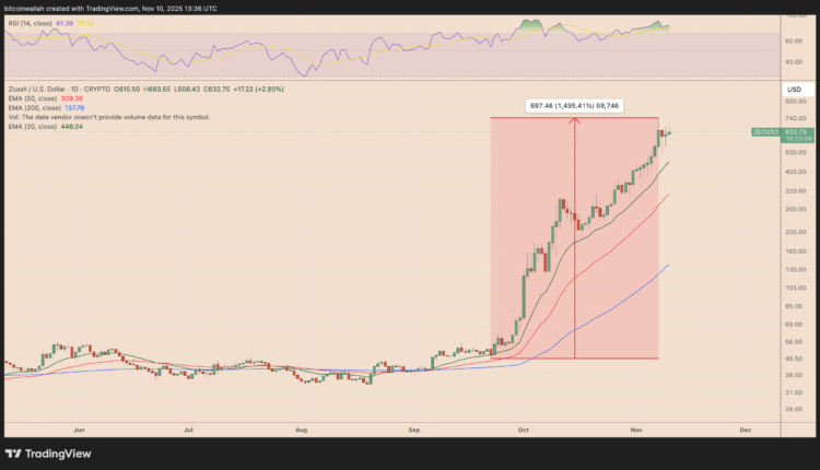 Zcash (ZEC) has skyrocketed by around 1,500% in the past two months, surging to $750—its highest level since January 2018—especially following endorsements from prominent crypto figures such as Naval Ravikant and Arthur Hayes.