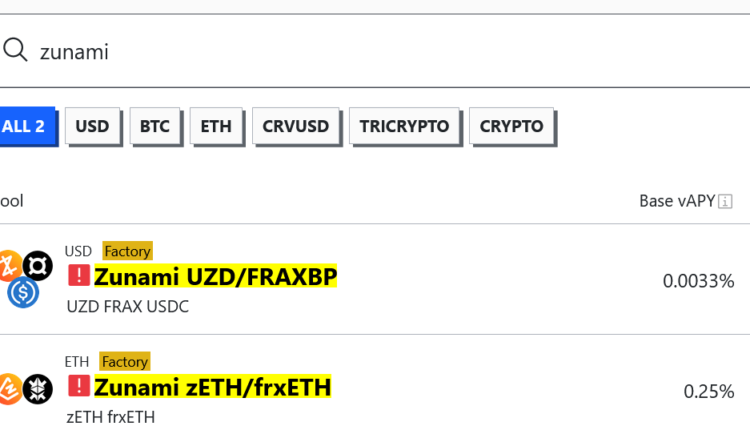Zunami is a decentralized revenue aggregator protocol that allows users to stake stablecoins for yield, with its largest stable pools situated on Curve.